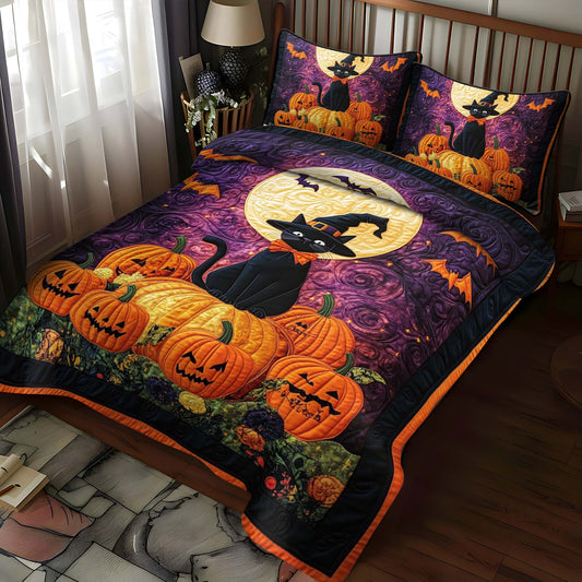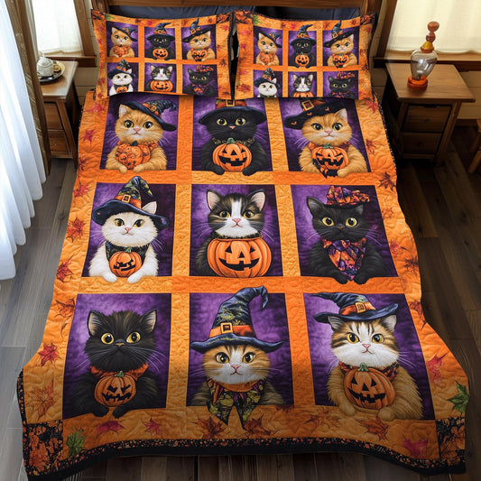 Witch Hat Kitties 3-Piece Quilted Bedding Set NCU0TL1174