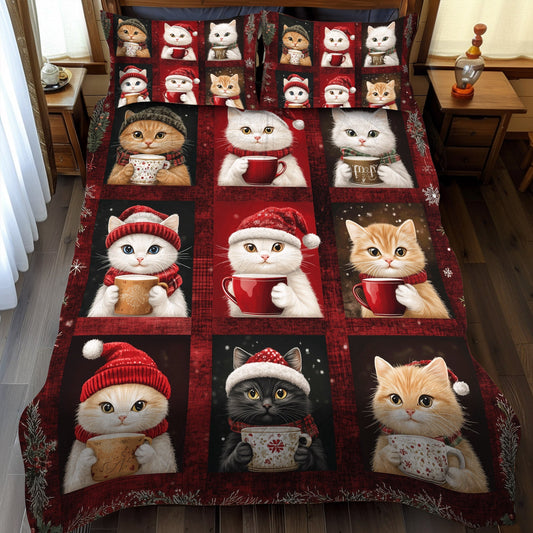 Yuletide Cats 3-Piece Quilted Bedding Set NCU0TL1186