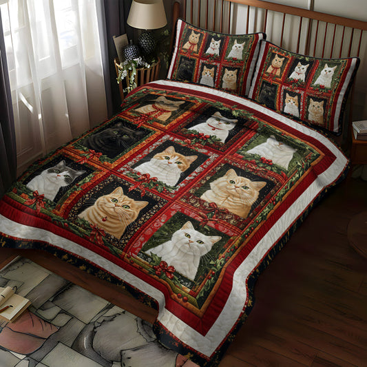 Yuletide Cats 3-Piece Quilted Bedding Set NCU0TL1756