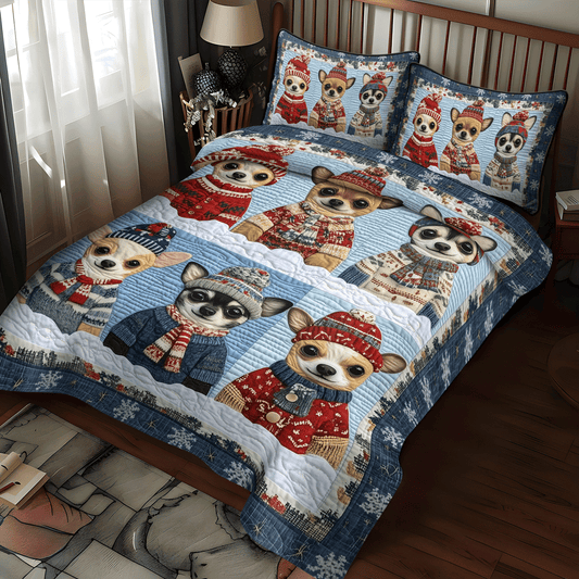 Yuletide Chihuahuas 3-Piece Quilted Bedding Set NCU0TH2055