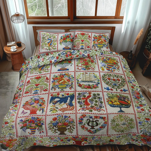 Woodstock Bloom 3-Piece Quilted Bedding Set NCU0PVL351