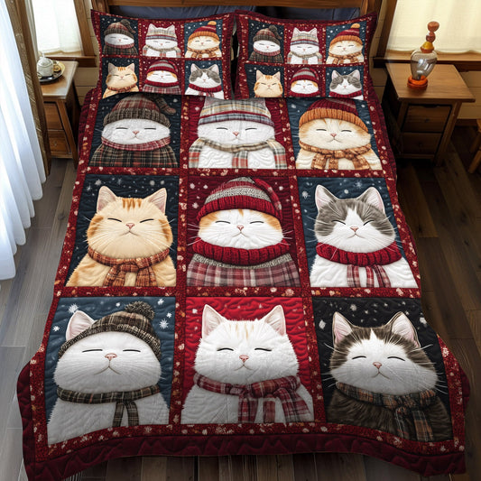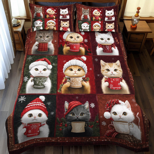 Cozy Christmas Cats 3-Piece Quilted Bedding Set NCU0TL1188