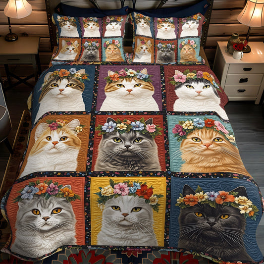 Flower Crown Felines 3-Piece Quilted Bedding Set NCU0TL1196