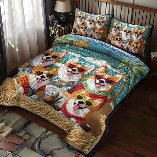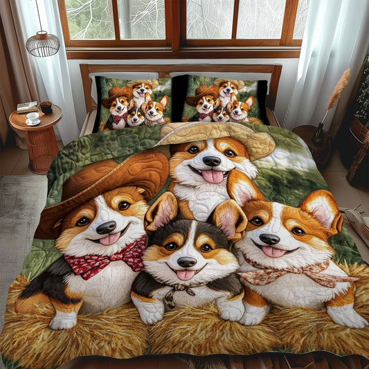 Corgi Cuddle Haven 3-Piece Quilted Bedding Set NCU0PT835