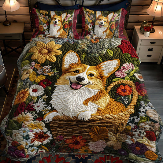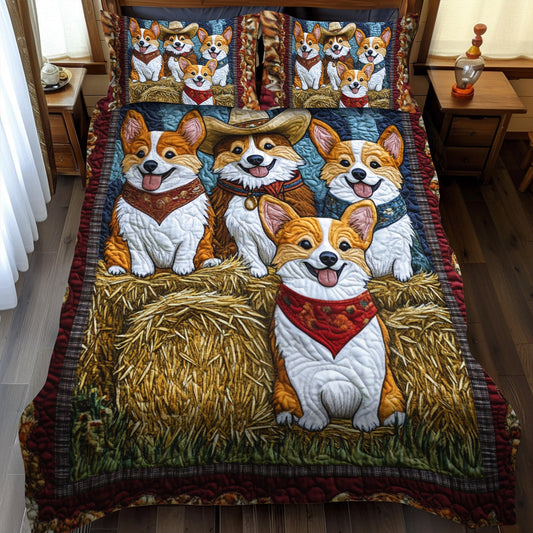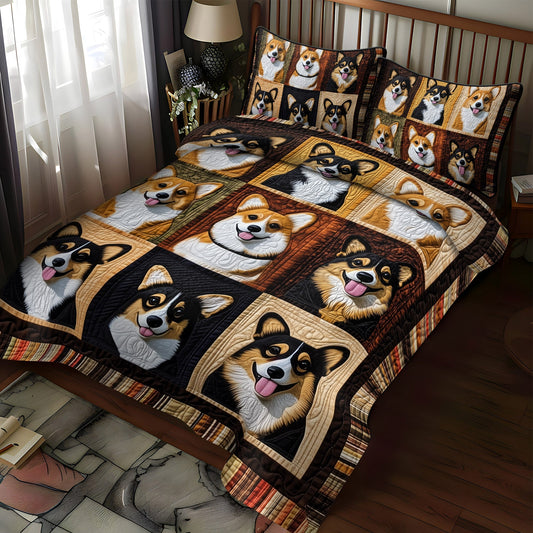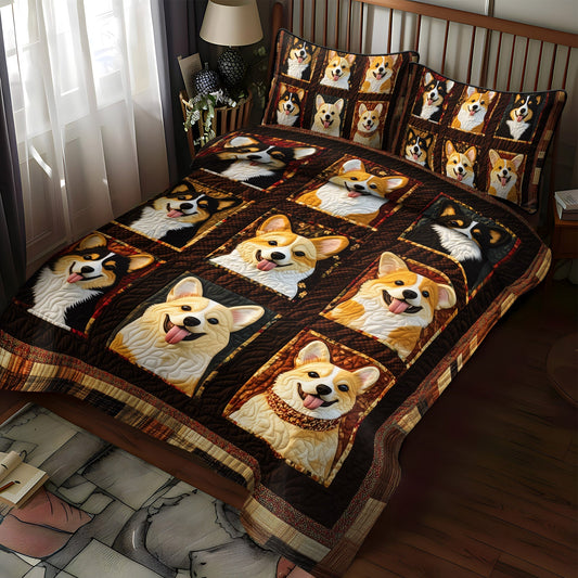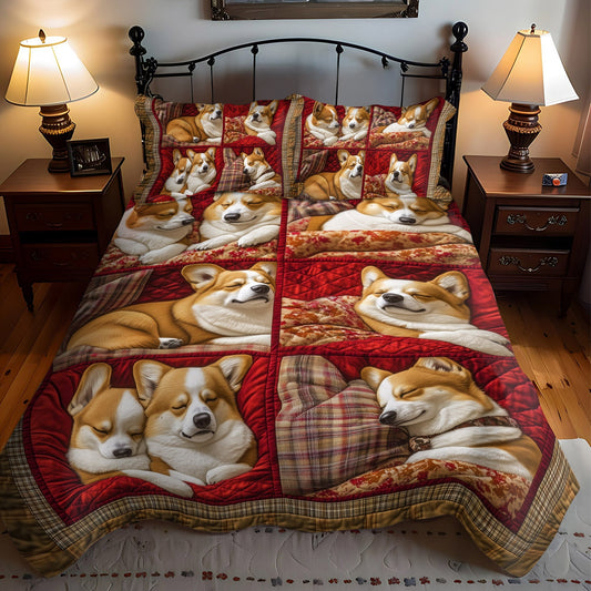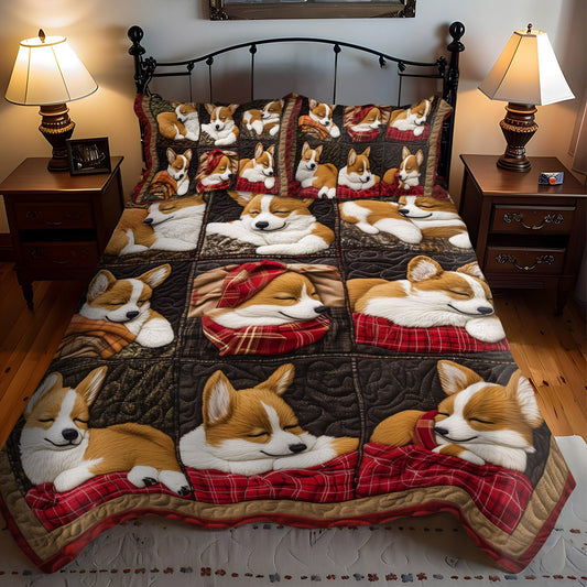 Cozy Corgi Retreat 3-Piece Quilted Bedding Set NCU0PT843