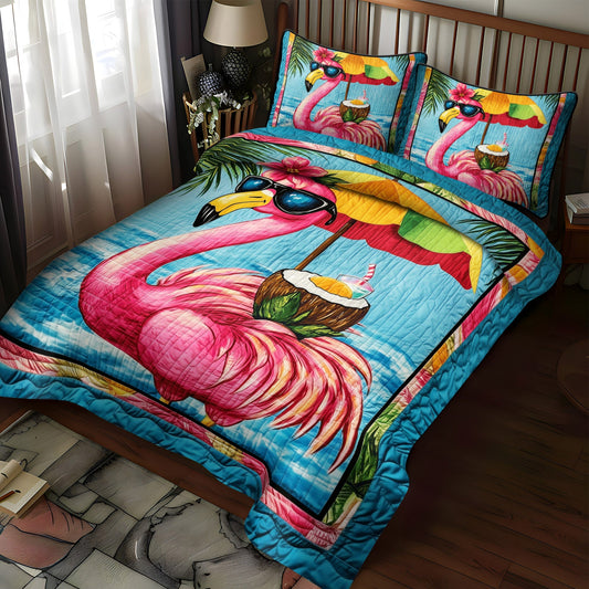Flamingo Shine 3-Piece Quilted Bedding Set NCU0TL890