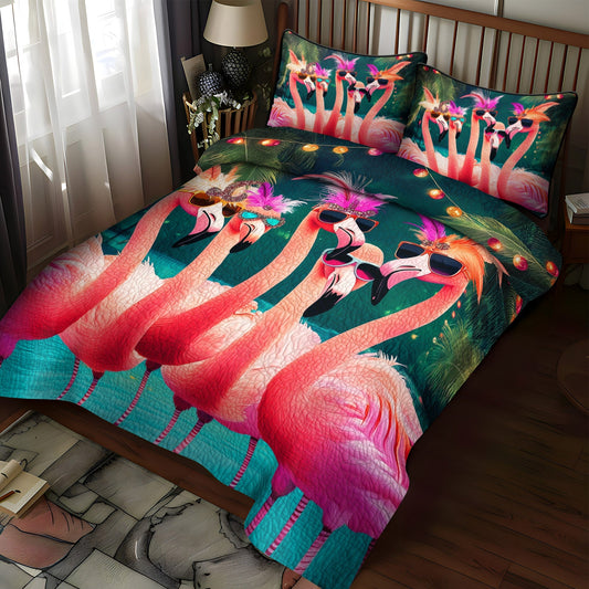 Flamingo Vibes 3-Piece Quilted Bedding Set NCU0TL880