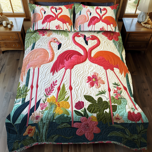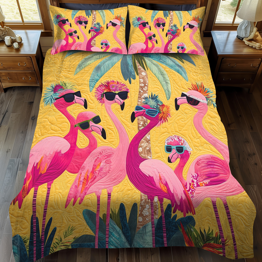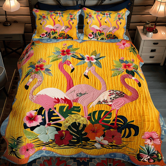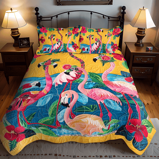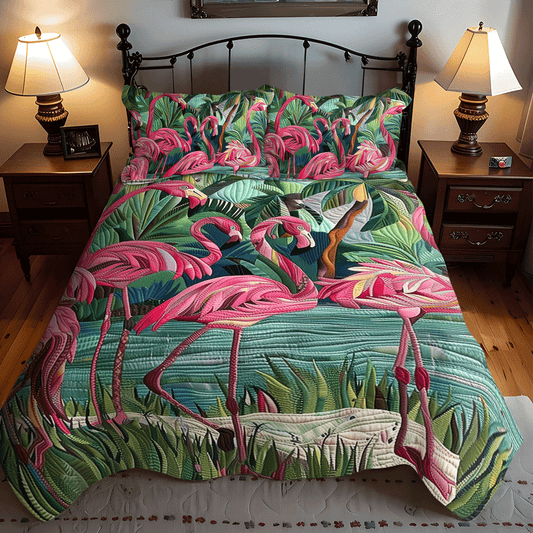 Playful Flamingo 3-Piece Quilted Bedding Set NCU0VL567