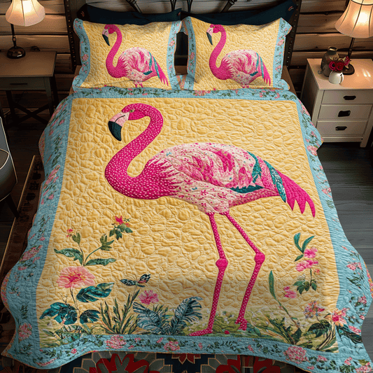 Tropical Flamingo 3-Piece Quilted Bedding Set NCU0PD501