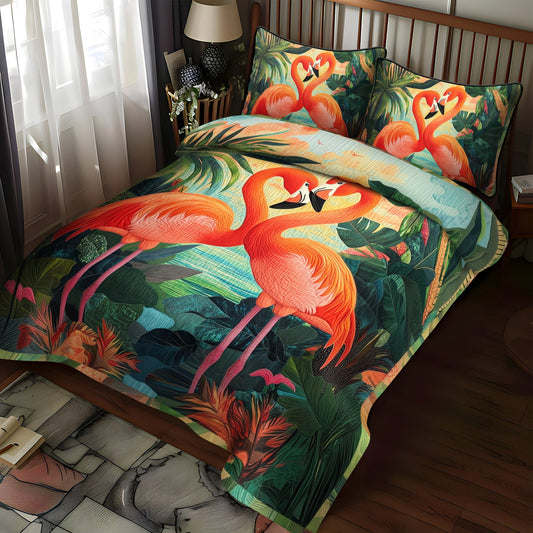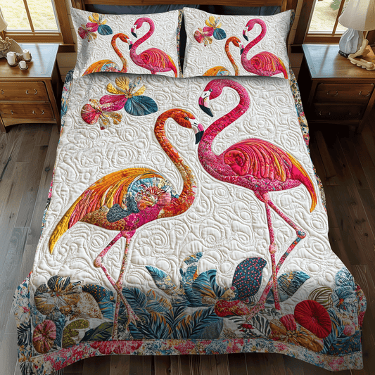 Flamingo Fantasy 3-Piece Quilted Bedding Set NCU0TL776