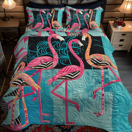 Flamingo Fantasy 3-Piece Quilted Bedding Set NCU0PD505