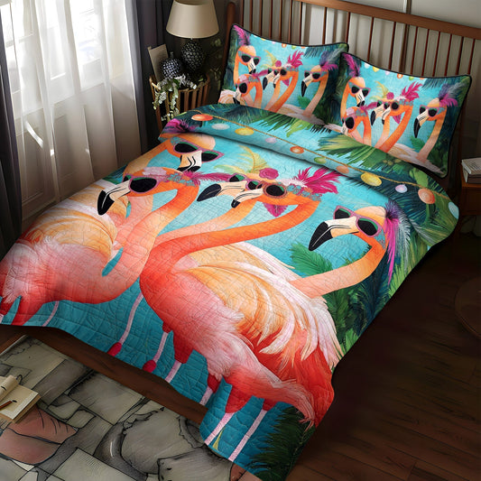 Flamingo Parade 3-Piece Quilted Bedding Set NCU0TL896
