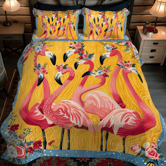Flamingo Magic 3-Piece Quilted Bedding Set NCU0TL879