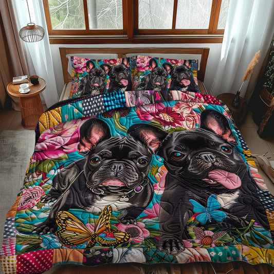 French Bulldog Floral Garden 3-Piece Quilted Bedding Set NCU0PD087
