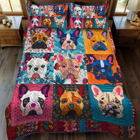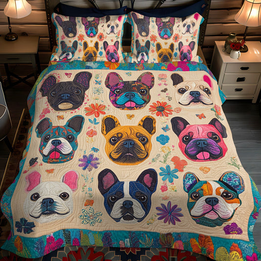 Vibrant Frenchie Faces 3-Piece Quilted Bedding Set NCU0PD386