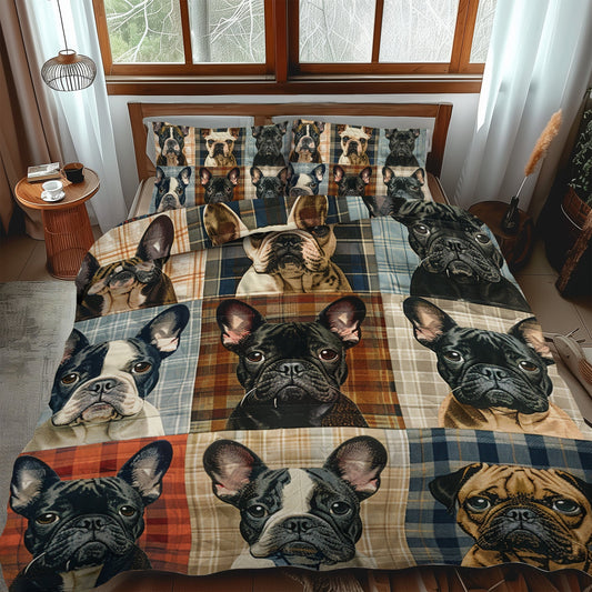 Plaid French Bulldog 3-Piece Quilted Bedding Set NCU0PD089