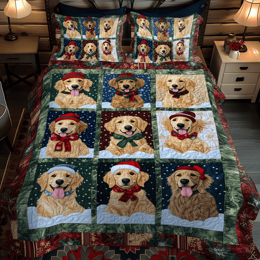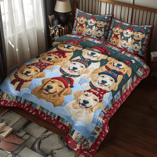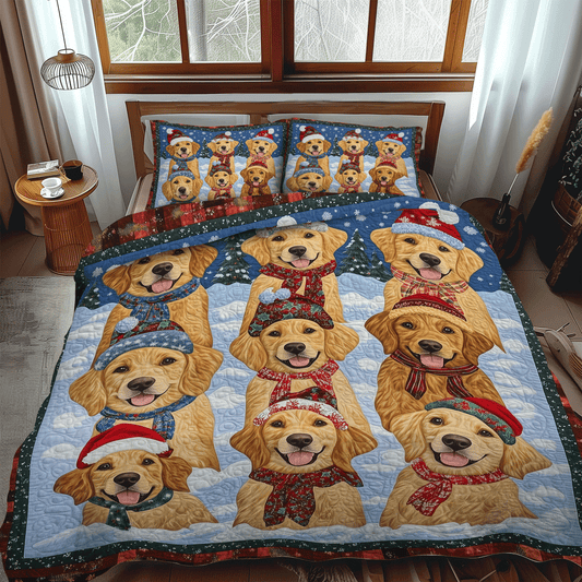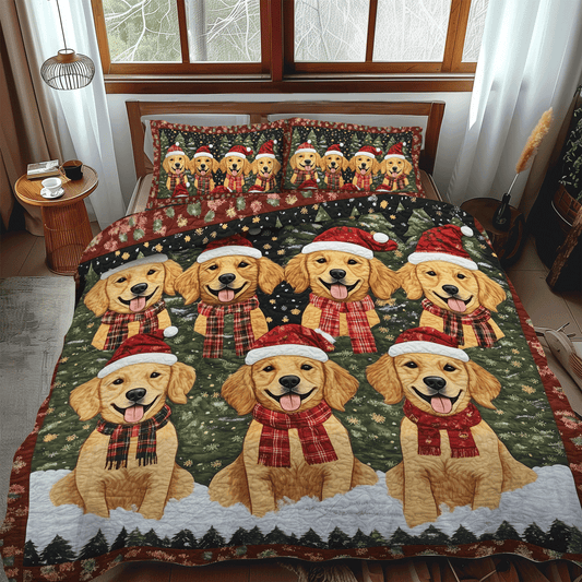 Holiday Golden Pups 3-Piece Quilted Bedding Set NCU0TH1633