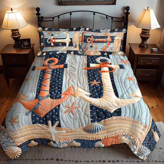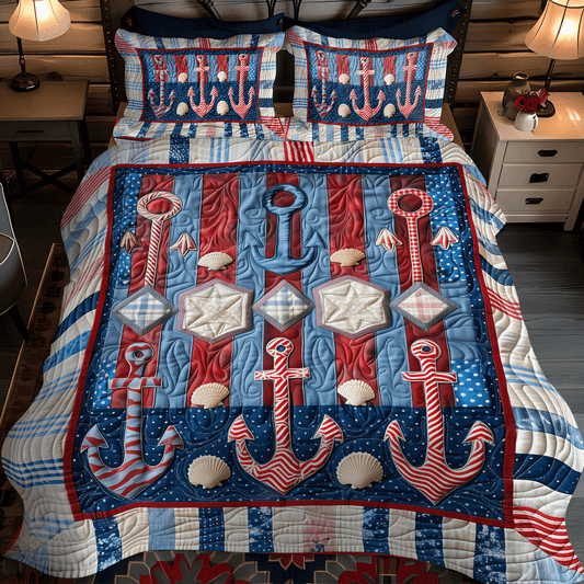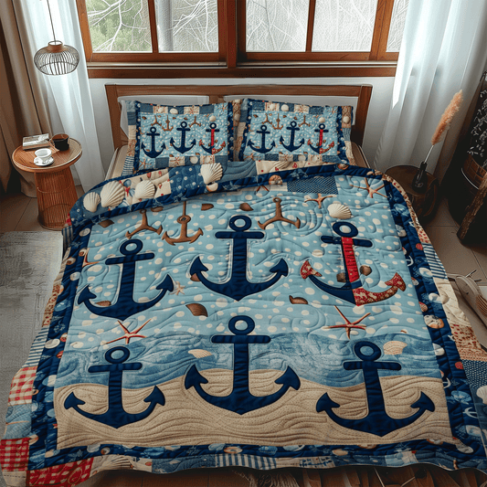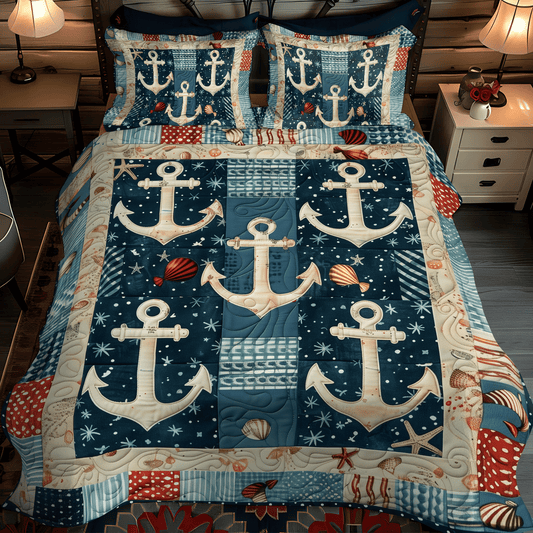 Deep Sea Anchors 3-Piece Quilted Bedding Set NCU0TH1220