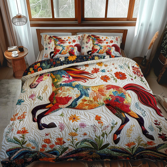 Majestic Floral Horse 3-Piece Quilted Bedding Set NCU0PD574