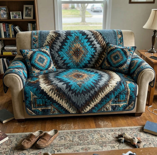Turquoise Mesa Quilted Sofa Cover NCU0LDH295