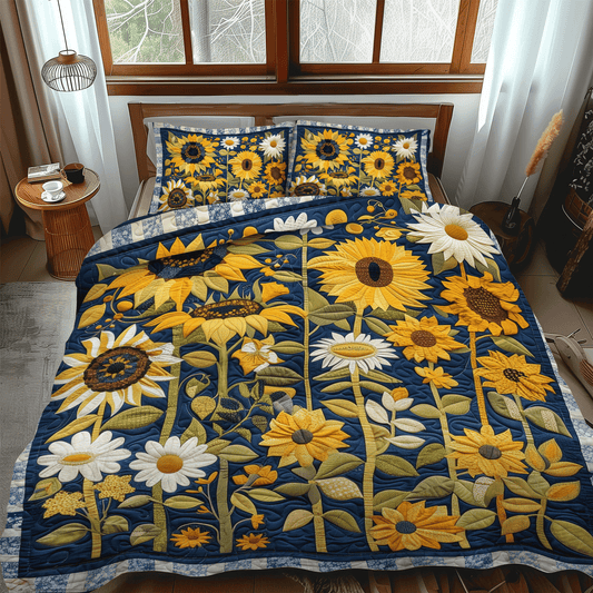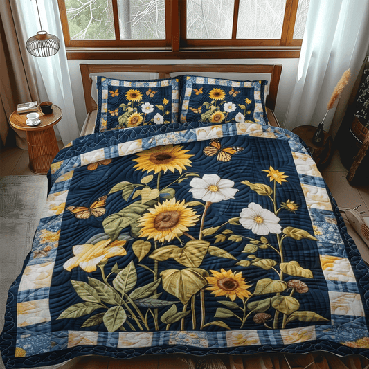 Midnight Sunflowers 3-Piece Quilted Bedding Set NCU0TH1002
