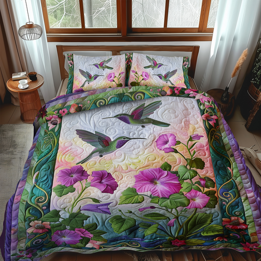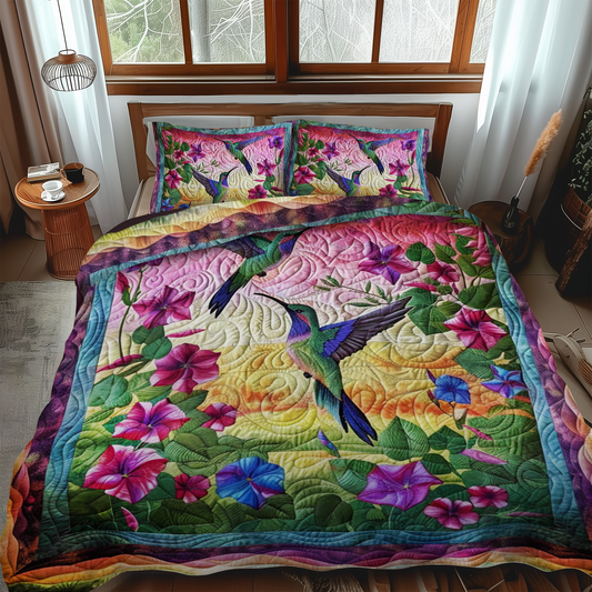 Hummingbird With Sunset 3-Piece Quilted Bedding Set NCU0PT027
