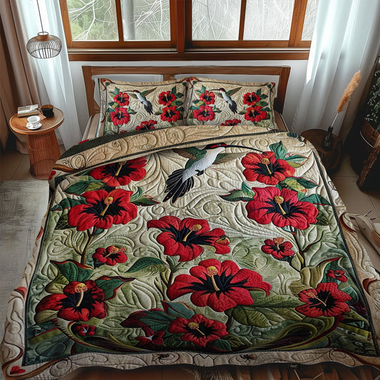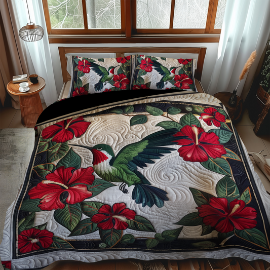 Ruby Hummingbird 3-Piece Quilted Bedding Set NCU0PT026