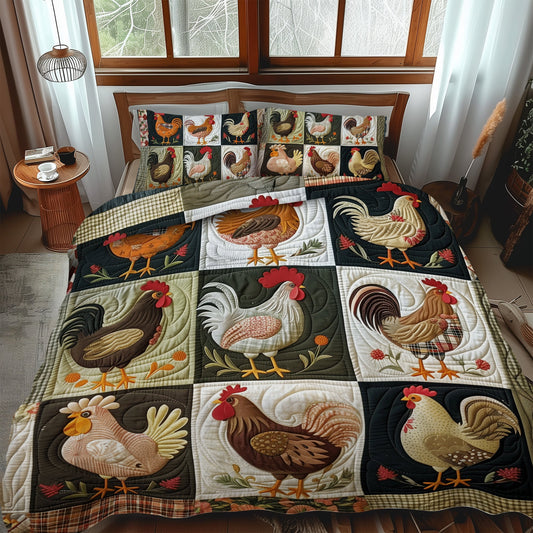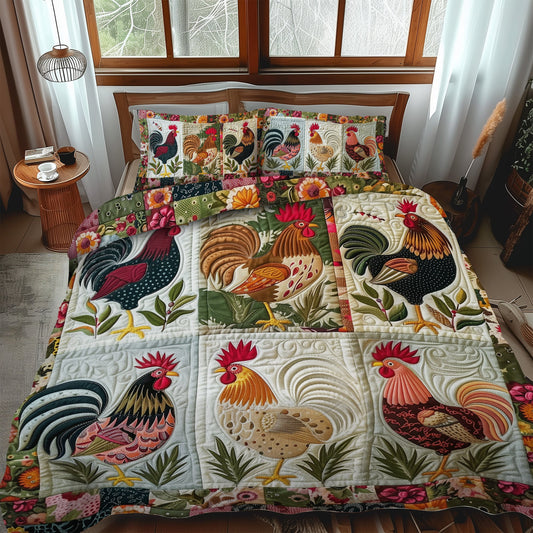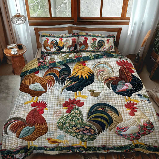 Charming Rooster 3-Piece Quilted Bedding Set NCU0TH885
