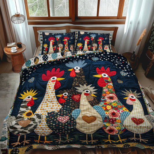 Nighttime Hens 3-Piece Quilted Bedding Set NCU0TH888