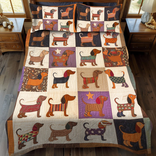 Sausage Dog Symphony 3-Piece Quilted Bedding Set NCU0DV057