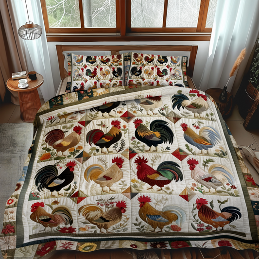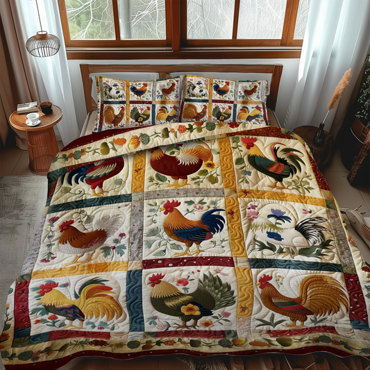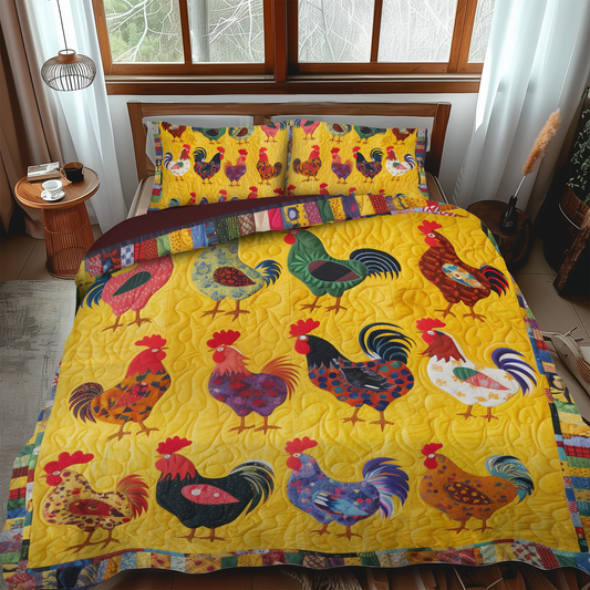 Chicken Vibrant Village 3-Piece Quilted Bedding Set NCU0PT050