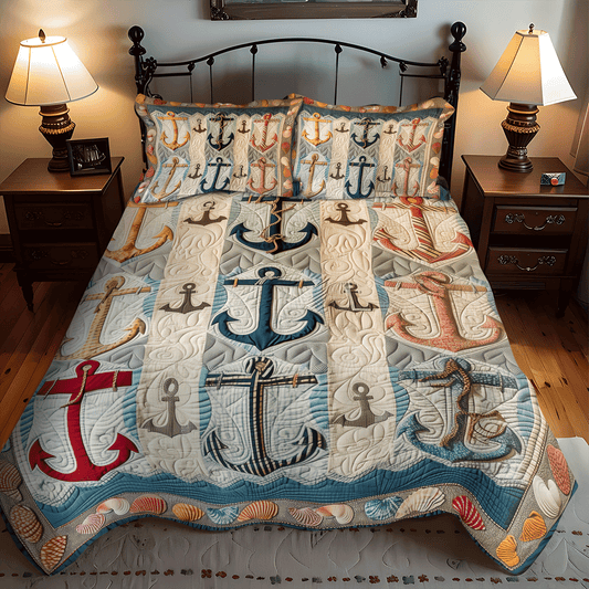 Nautical Anchors 3-Piece Quilted Bedding Set NCU0TH1213