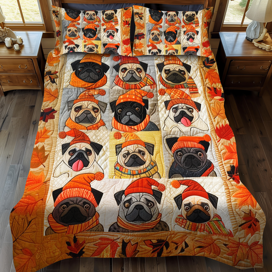 Autumn Vibe Pugs 3-Piece Quilted Bedding Set NCU0VL300