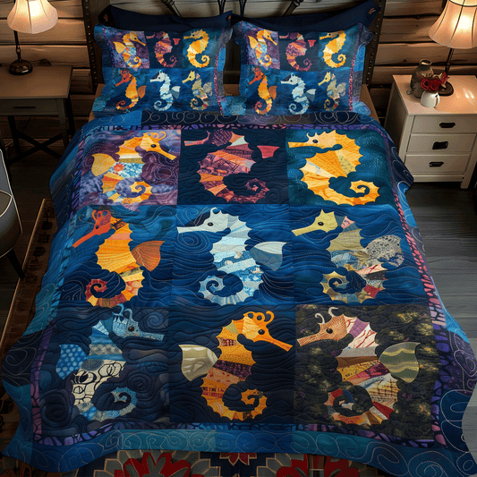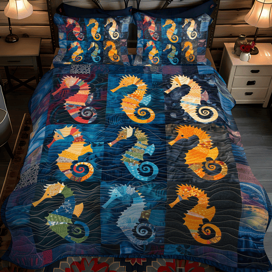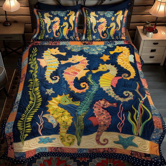 Colorful Seahorses 3-Piece Quilted Bedding Set NCU0TH1259