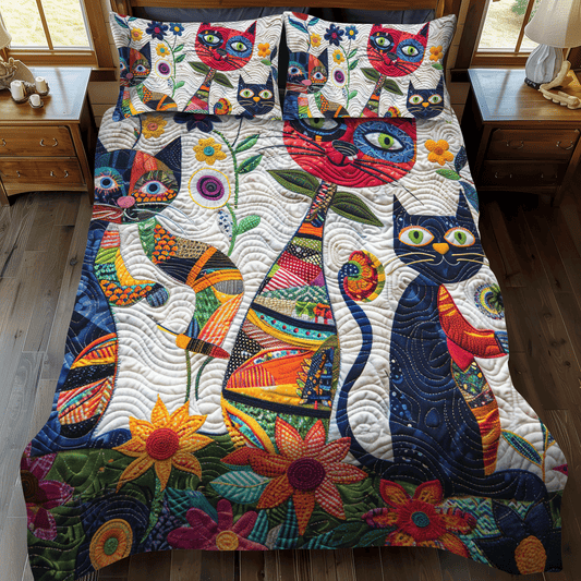 Floral Colorful Cats 3-Piece Quilted Bedding Set NCU0PD326