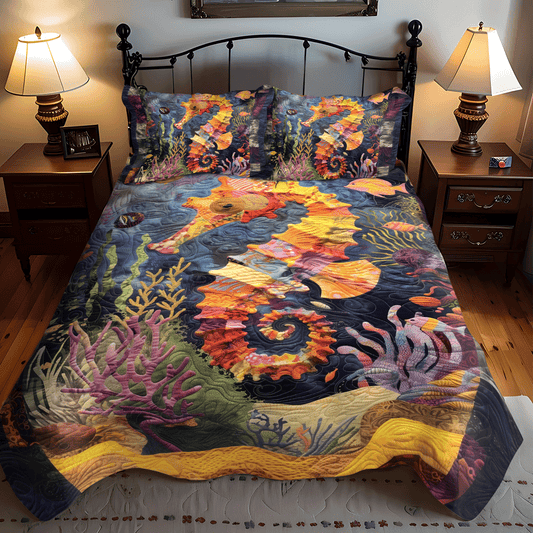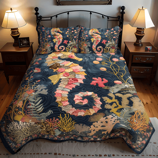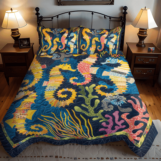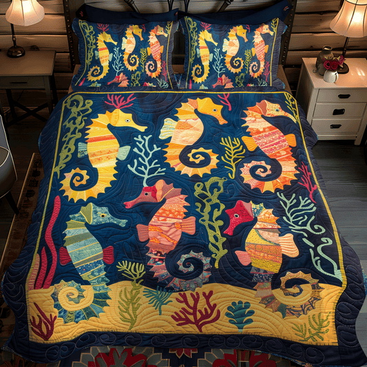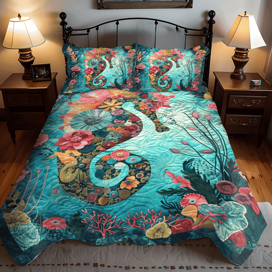 Mystical Seahorse 3-Piece Quilted Bedding Set NCU0TH1264