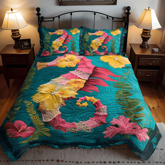 Hibiscus Seahorse 3-Piece Quilted Bedding Set NCU0TH1271