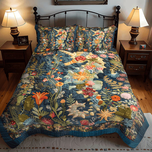 Seahorse in Bloom 3-Piece Quilted Bedding Set NCU0TH1270