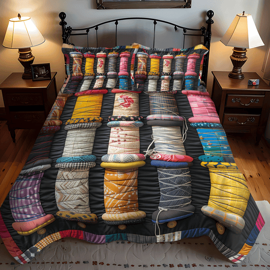 Thread Spool Symphony 3-Piece Quilted Bedding Set NCU0TH1295