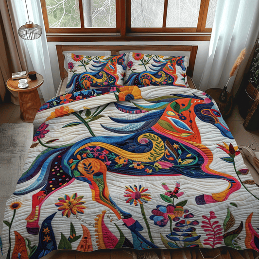 Colorful Galloping Horse 3-Piece Quilted Bedding Set NCU0PD338