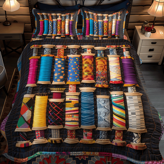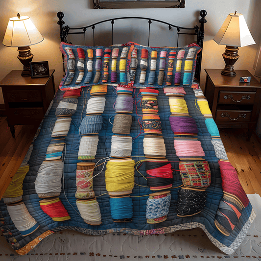 Colorful Spools 3-Piece Quilted Bedding Set NCU0TH1296