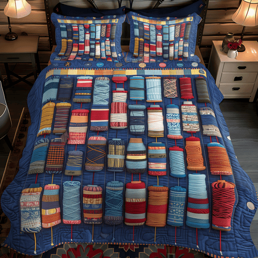Bluish Spools 3-Piece Quilted Bedding Set NCU0TH1307