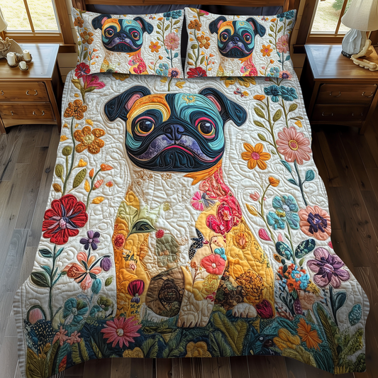 Quirky Pug 3-Piece Quilted Bedding Set NCU0VL369