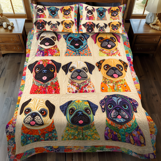 Affectionate Pugs 3-Piece Quilted Bedding Set NCU0VL367