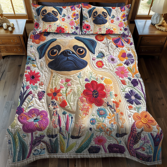 Charming Pug 3-Piece Quilted Bedding Set NCU0VL361