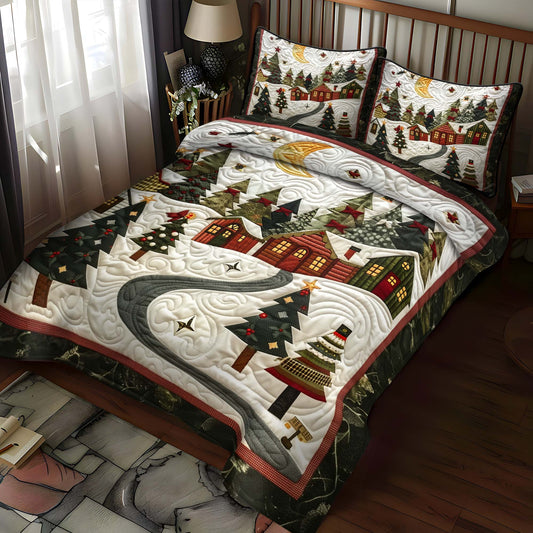 Moonlit Christmas Village 3-Piece Quilted Bedding Set NCU0NT048