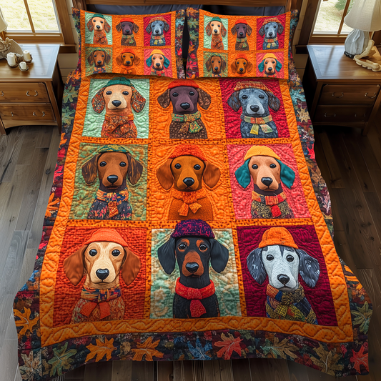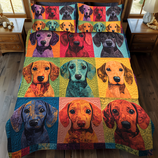 Affectionate Dachshunds 3-Piece Quilted Bedding Set NCU0VL442
