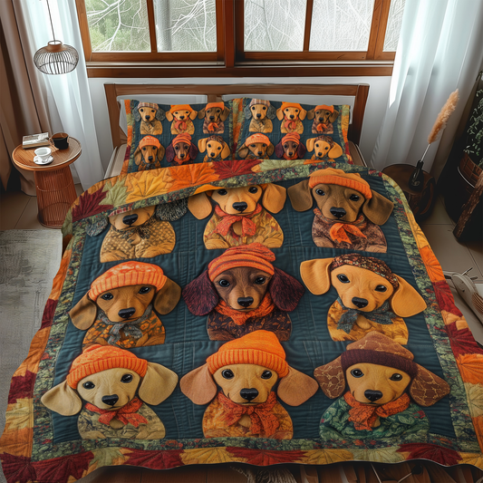 Cute Dachshunds 3-Piece Quilted Bedding Set NCU0VL441