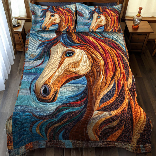 Majestic Colorful Horse 3-Piece Quilted Bedding Set NCU0PD577