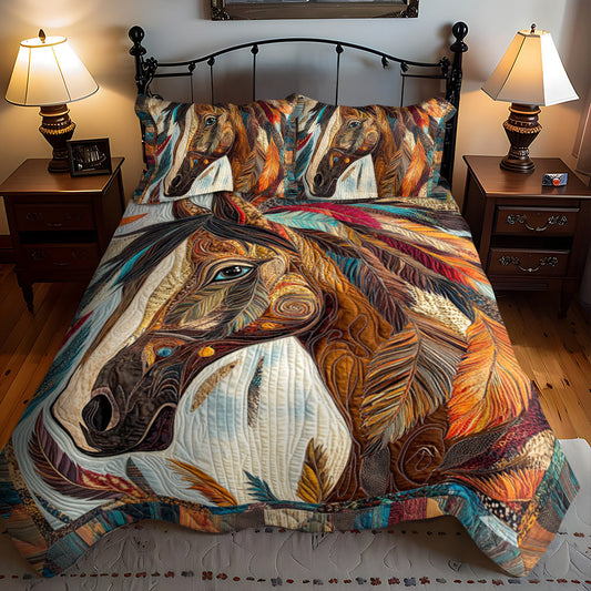 Artistic Horse-Themed 3-Piece Quilted Bedding Set NCU0PD580